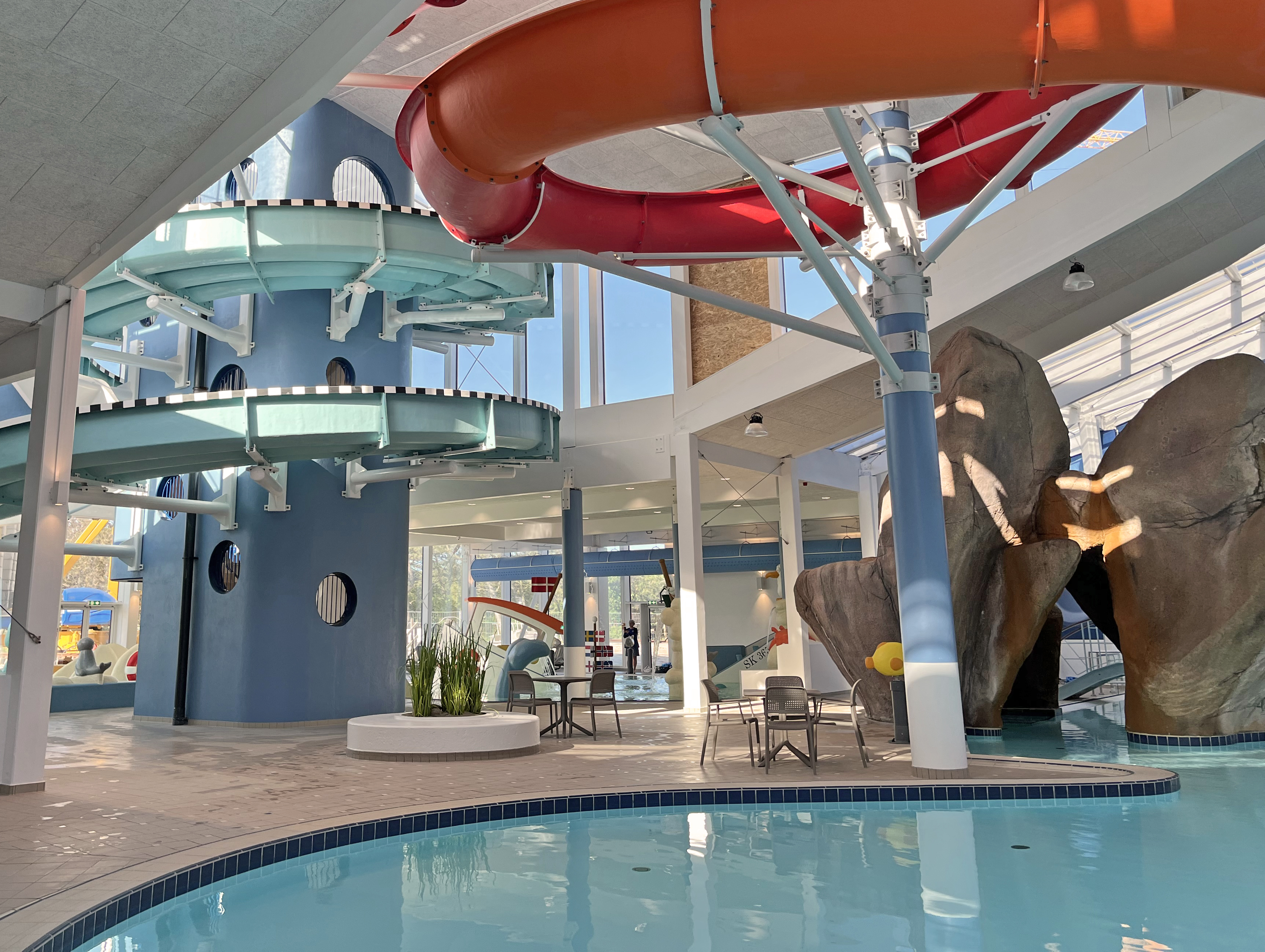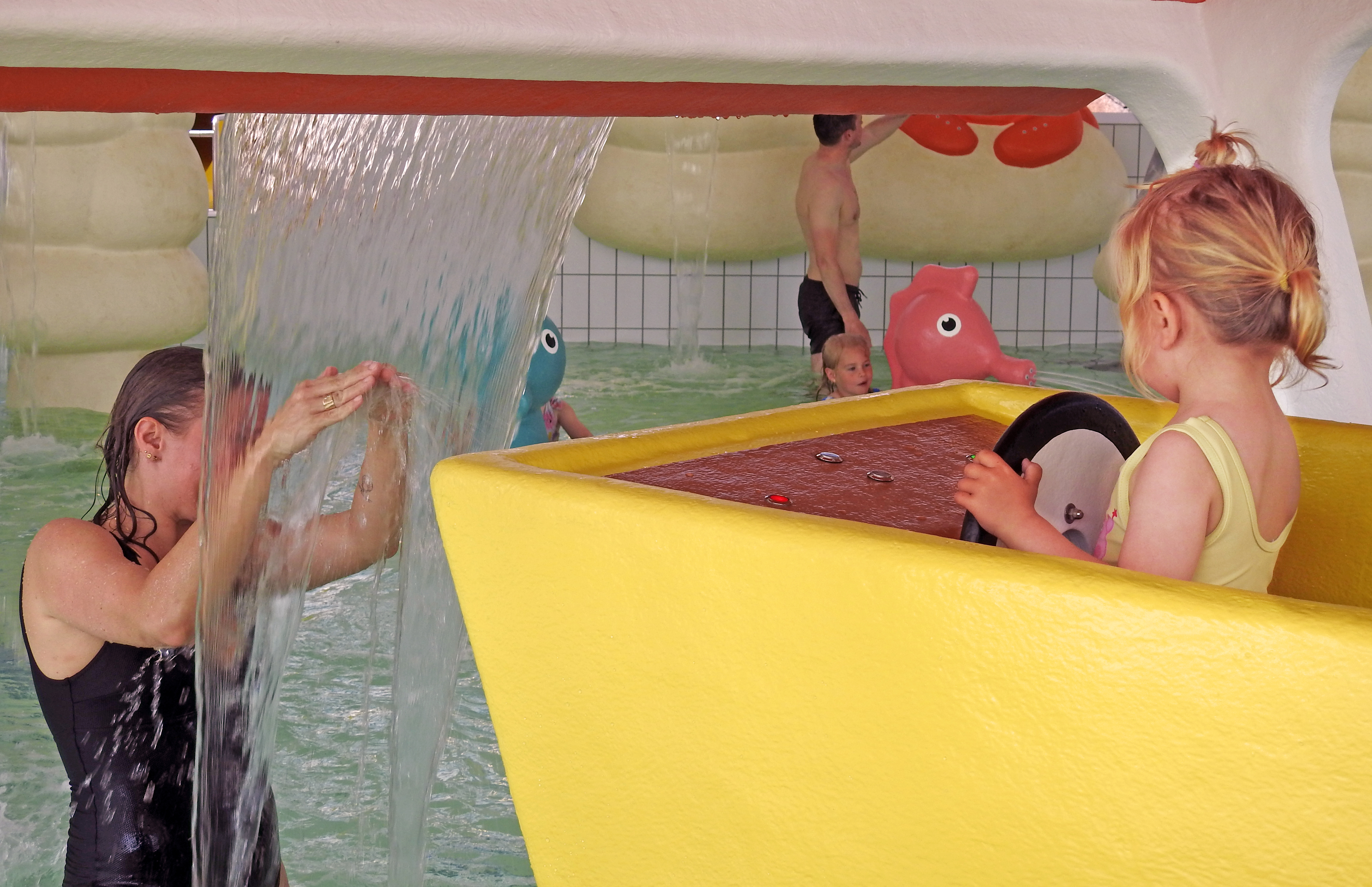 Badelandet er et sandt eldorado for små og store vandhunde. Her er rutsjebane med tidtagning, glidebane for de yngste samt modstrømskanal og vandkanoner mm.