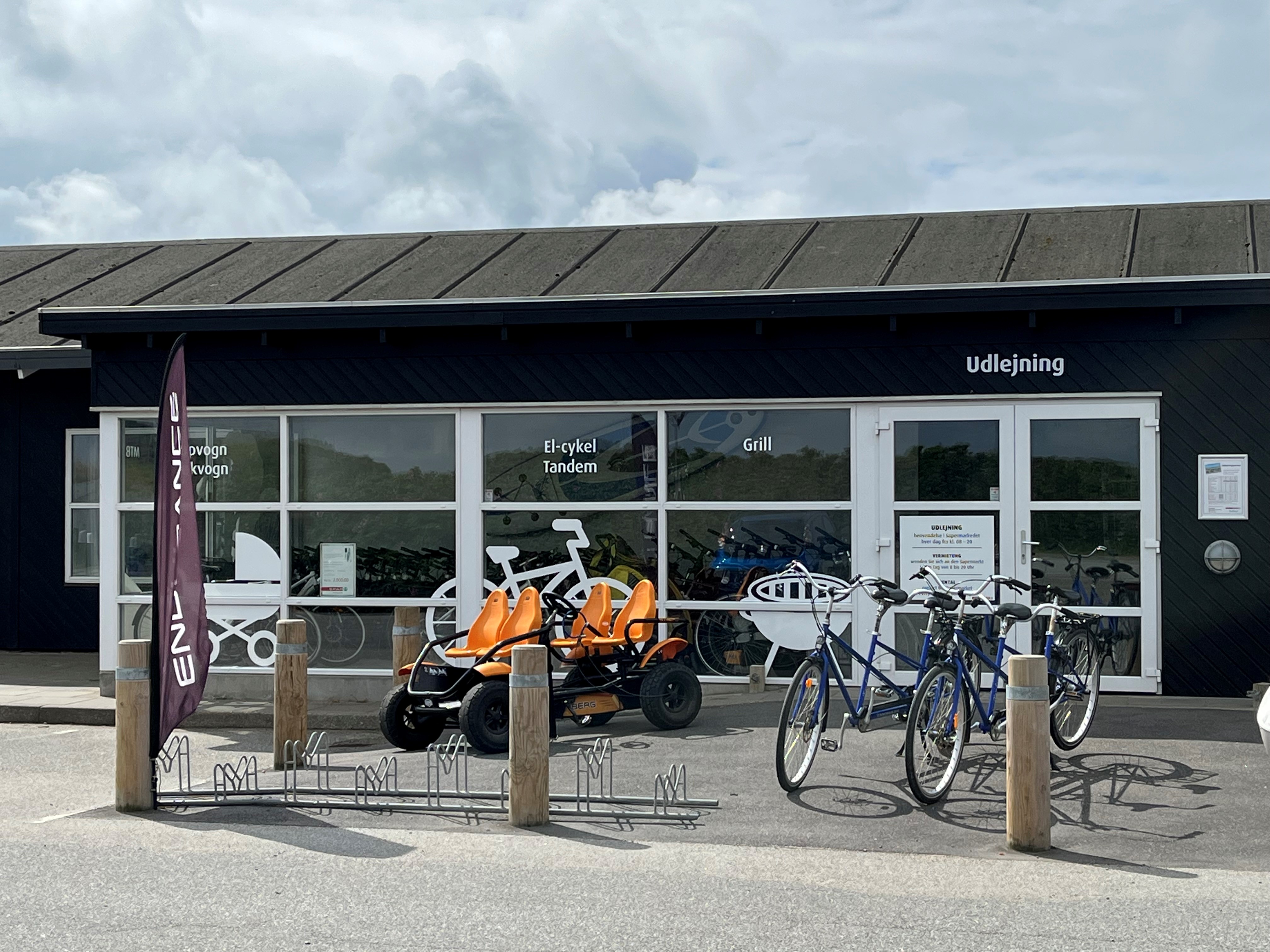 Fortvivl ikke. Supermarkedet har et bredt sortiment og tilbyder et stort udvalg indenfor udlejning af alt fra grill til cykler samt barne- og klapvogne mm. Så der er ingen grund til at proppe bilen. Kig blot forbi og lej din feriecykel eller en barnevogn til den mindste. Snyd ikke dig selv for en hyggelig familietur på tandemcyklen, ladcyklen eller familiecyklen til 4 personer. Med Skallerups unikke beliggenhed har vi flere forslag til ruter i smukke Nordjylland.