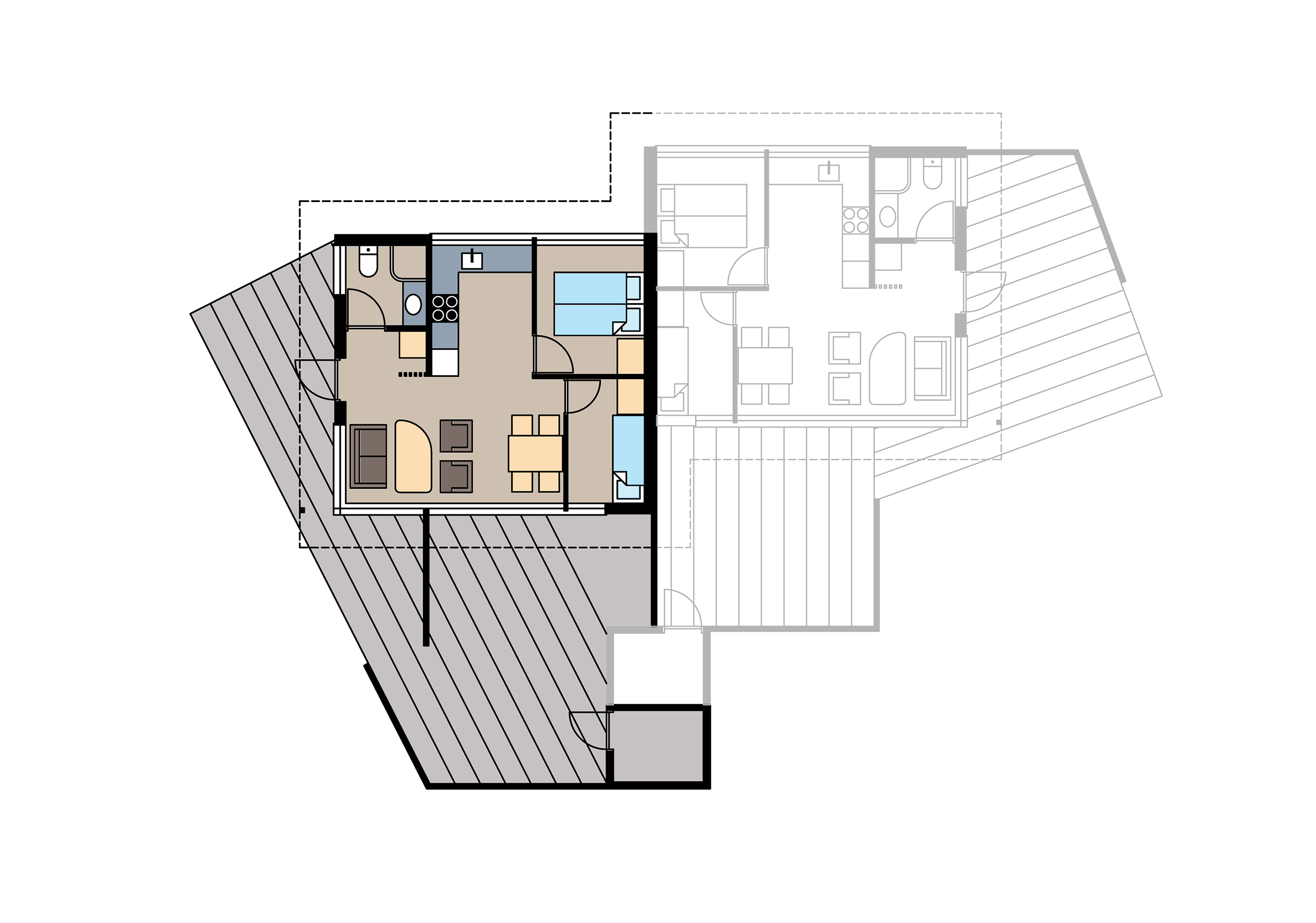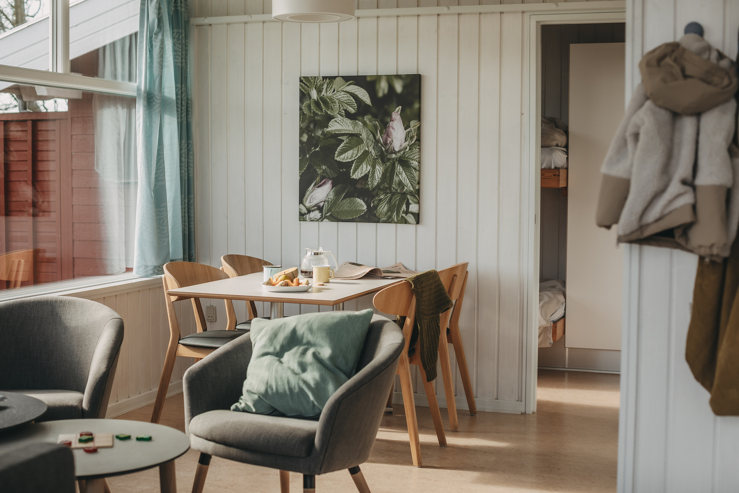 Den lille hyggelige feriebolig til 4 personer er oplagt for familien med mindre børn, som ønsker den klassiske sommerhusstemning. A4 har 2 værelser, hvoraf det ene er med dobbeltseng og det andet med køjeseng. Kombineret stue og køkken skaber gode rammer for familiehyggen, som også kan rykkes udenfor på den store terrasse, hvor I kan sidde uforstyrret og nyde naturen og hinanden.