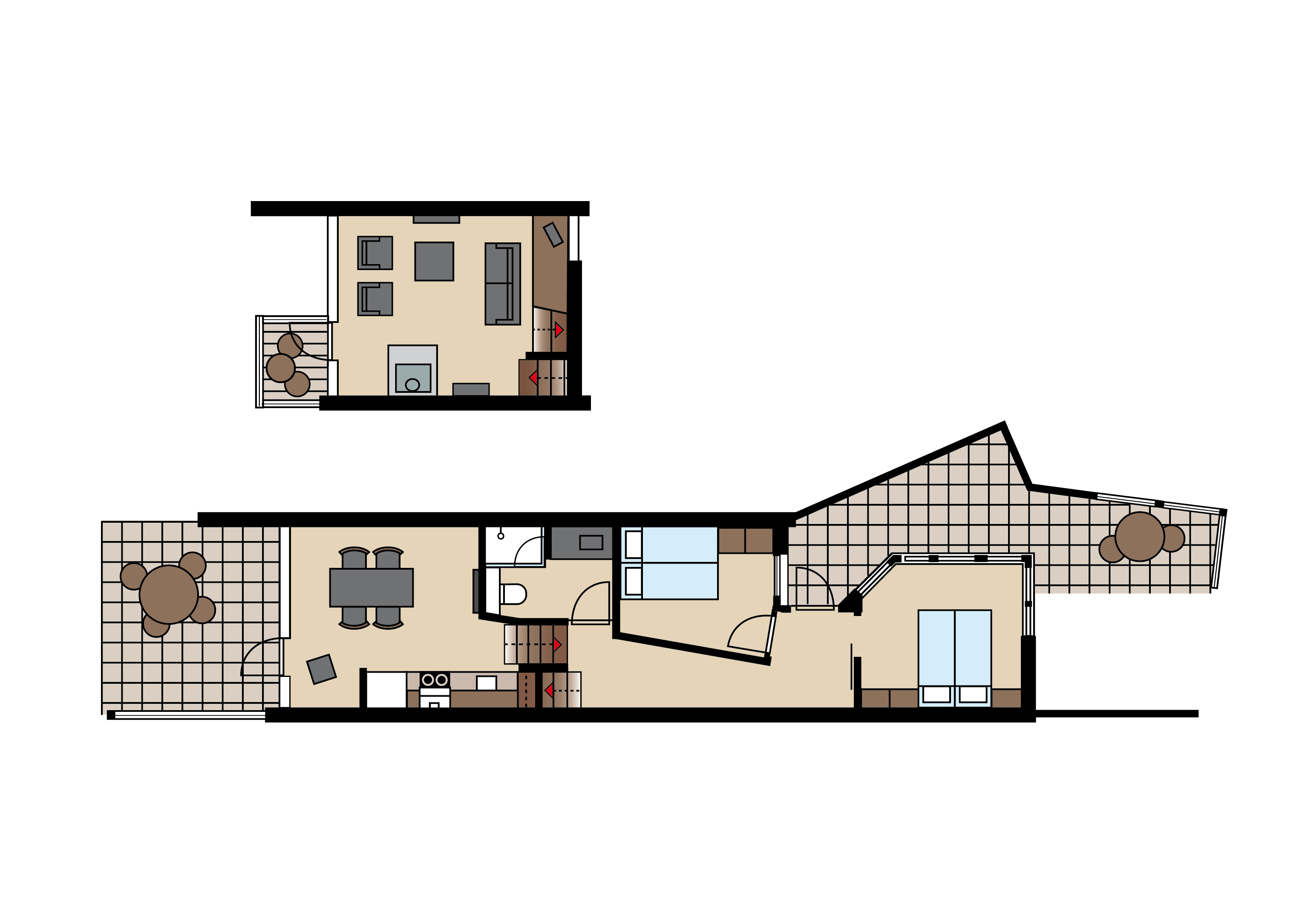 Hyggelig lejlighed med udsigt i særklasse. Lejligheden er fordelt på 3 plan med 2 soverum - det ene med dobbeltseng og det andet med 2 enkeltsenge. Lejligheden har badeværelse, køkken samt stue med en fantastisk udsigt over Vesterhavet. På de kølige aftener indbyder brændeovnen til hyggeligt samvær og fra den vestvendte altan kan du nyde roen og solnedgangen.